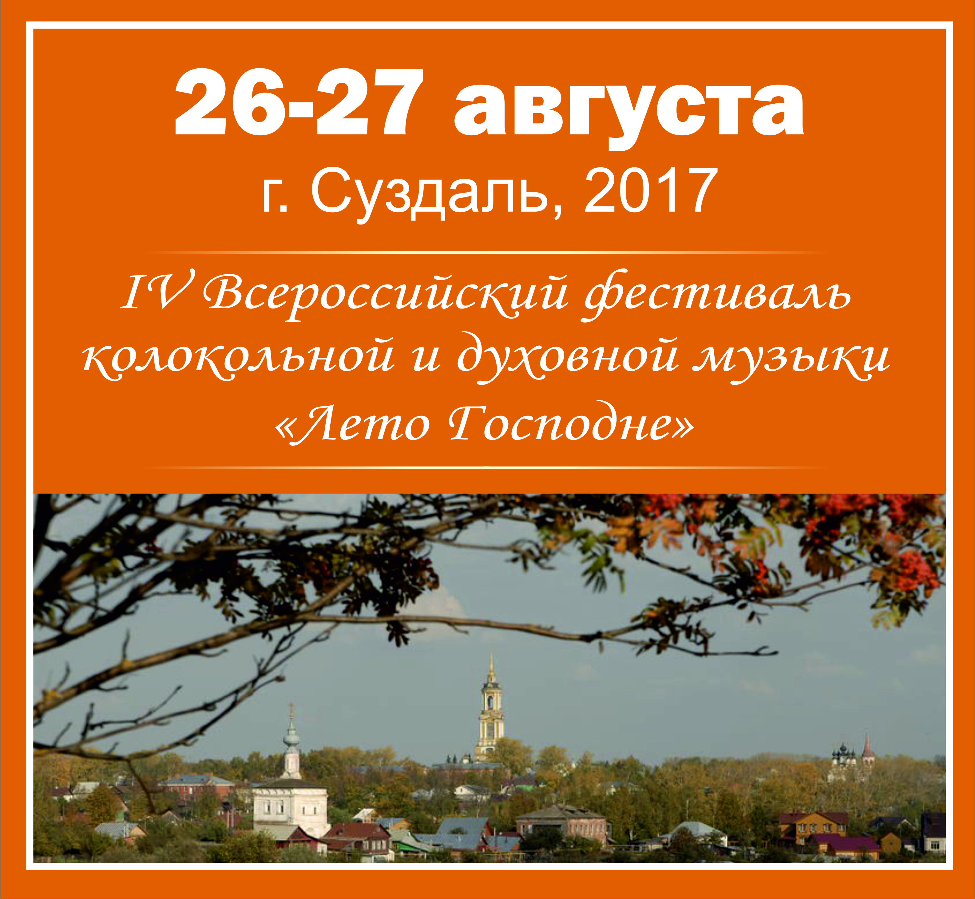 20-21 августа 2016 г. в Суздале пройдет юбилейный Третий фестиваль духовной музыки и колокольных звонов «Лето Господне». По традиции в нем примут участие именитые и начинающие звонари из разных уголков России и Ближнего зарубежья.