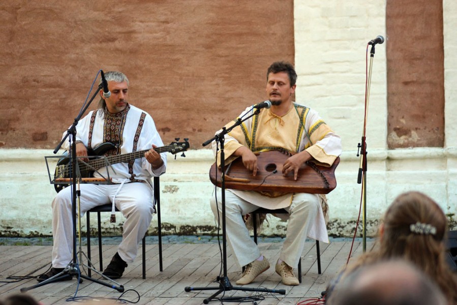 После обеда праздник переместился в центр города. Его продолжили участники проекта Елены Фроловой "Гусли мира". На полянах у церкви Успения Богородицы и храма Параскевы Пятницы выступали замечательные солисты и ансамбли. Среди них - Татьяна Купреянова со своими рукотворными гуслями, мультиинструменталист, поэт и композитор Сергей Старостин, Ярослава Зотова из Твери, ансамбль духовной и народной музыки "Лествица" из Ставрополья, московский ансамбль "Улица", в котором все инструменты сделаны руками его руководителя Бориса Ефремова, ансамбль суздальских звонарей "Лучина".