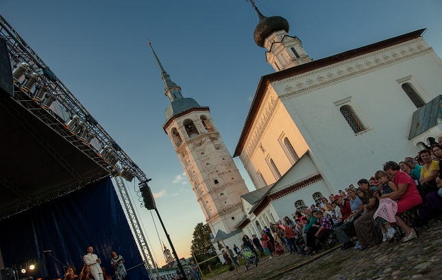 Завершил первый фестивальный день концерт на Торговой площади Суздаля Владимирского Губернаторского симфонического оркестра, Камерного хора, Капеллы мальчиков и Хора девочек под управлением Маэстро Артема Маркина. Музыканты исполнили знаменитую кантату Сергея Прокофьева "Александр Невский". Артистам помогал звонарь Андрей Дьячков, солирующий на малой звоннице возле сцены, а также звонари - участники фестиваля с колокольни Воскресенской церкви.