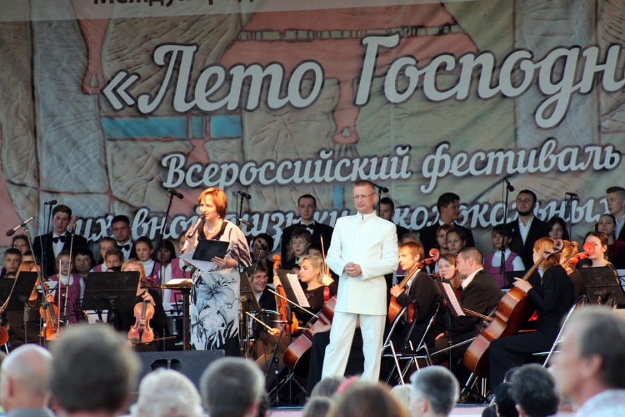 Праздник "Лето Господне" закончился общим соборным звоном на колокольне и передвижных звонницах в стенах Ризоположенского монастыря, а также награждением дипломами всех участников фестиваля и прекрасным большим концертом знаменитых Елены Фроловой, Сергея Старостина и Александра Мирзаяна.